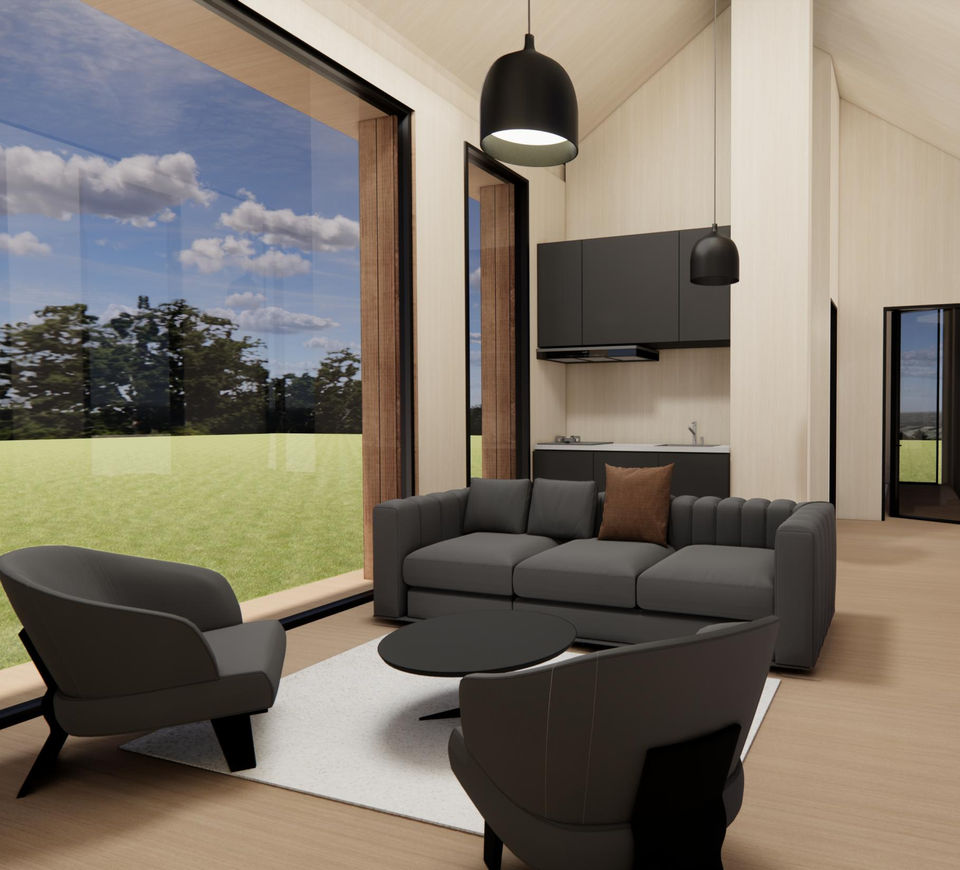 Maison préfabriquée modulaire en bois multifonctionnelle, studio/maison d'hôtes de jardin, intérieur moderne | Salon
