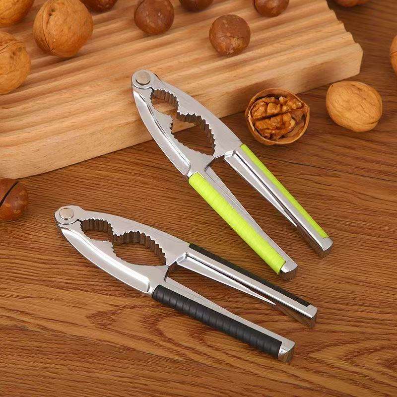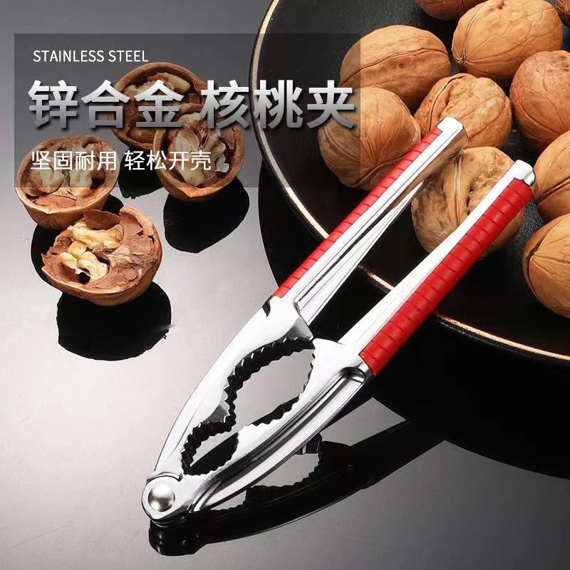 Casse-noix multifonctionnel en acier inoxydable avec poignée rouge pour décortiquer les noisettes, les pignons de pin et les noix