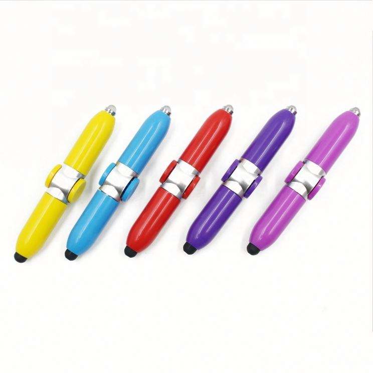 Stylos promotionnels multifonctionnels anti-stress avec stylet, stylos à bille avec lumière LED et stylo rotatif