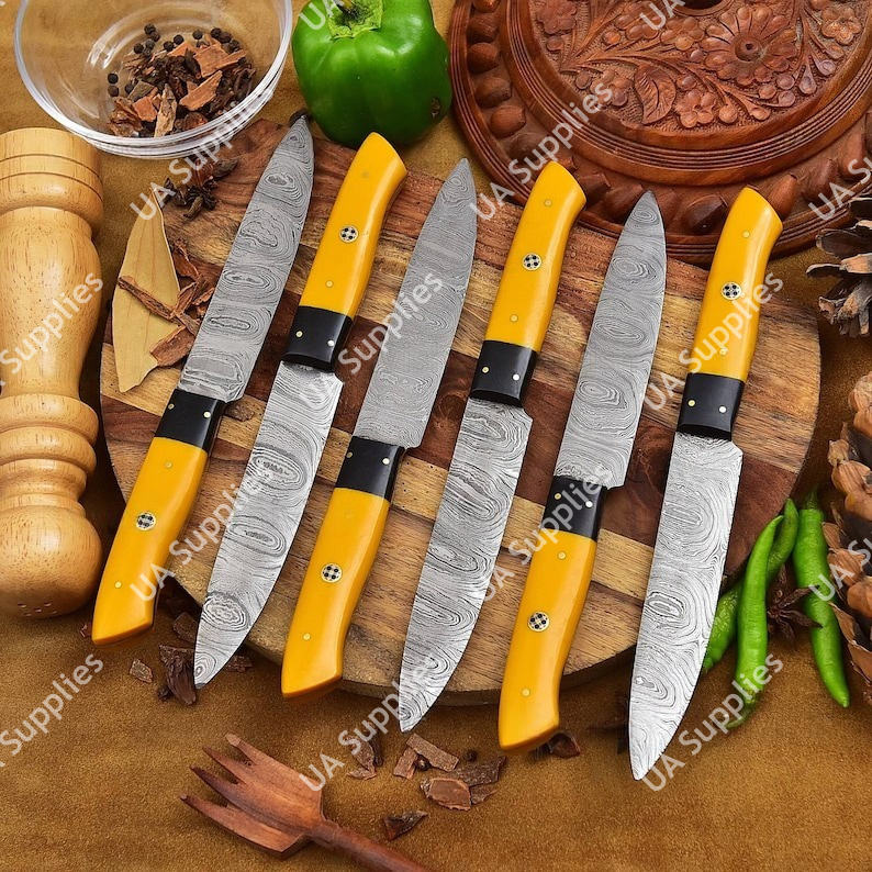 Couteau à steak et couteau d'office à lame pleine en acier de Damas