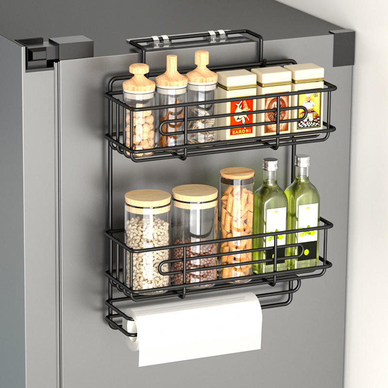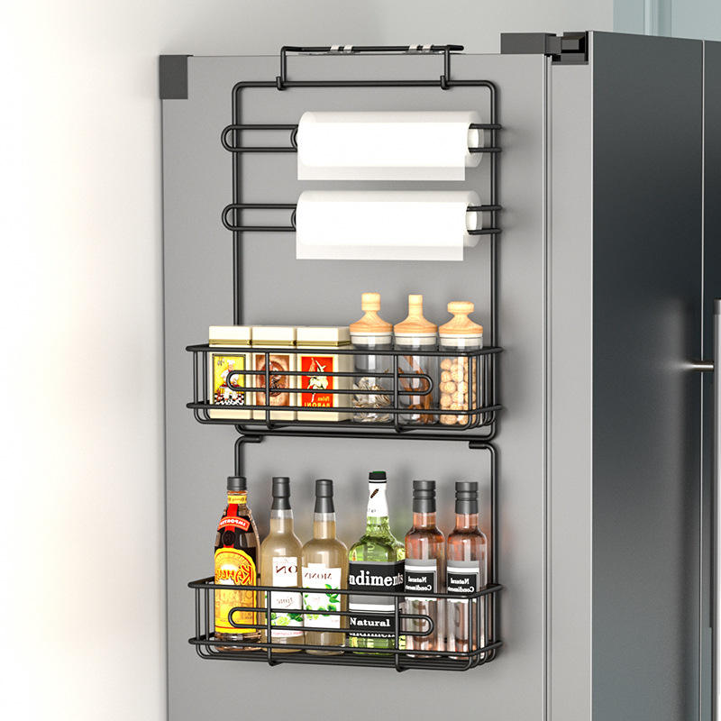 Étagère latérale multifonctionnelle pour réfrigérateur, organisateur mural pour épices de cuisine, essuie-tout et sacs alimentaires