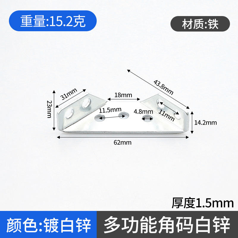 Supports d'étagères multifonctionnels en fer zingué à angle droit et triangulaire pour armoires Renforcement de meubles en bois