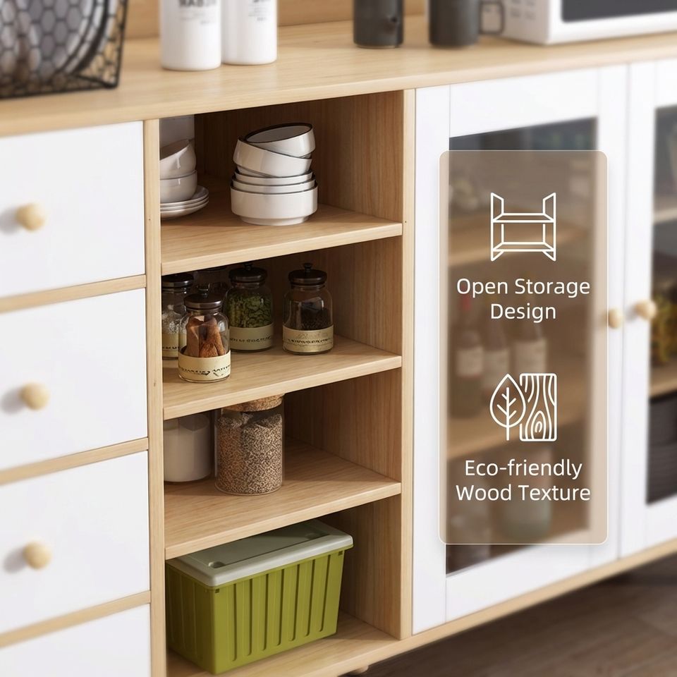 Meuble de salon multifonctionnel en bois massif avec portes en verre et étagères ouvertes | Meubles d'appartement peu encombrants grande capacité
