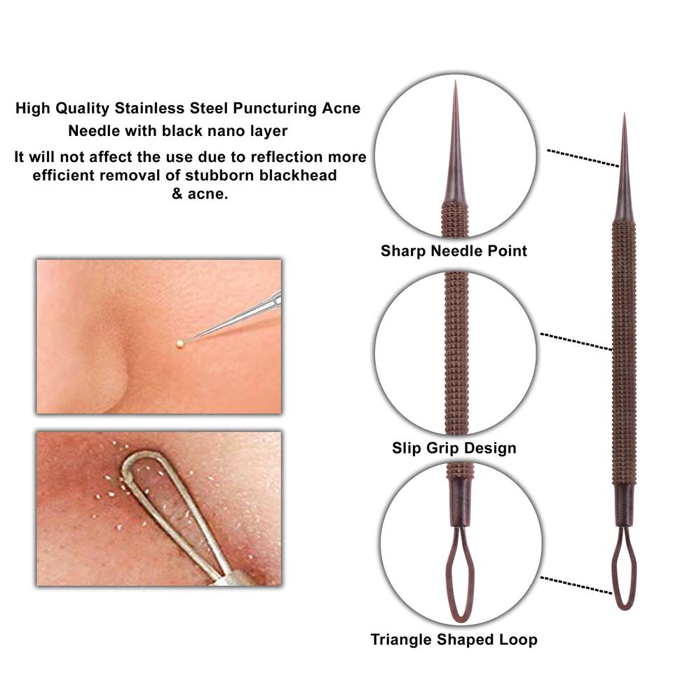 Kit d'outils multifonctionnels en acier inoxydable pour salon de beauté : Nettoyage de l'acné, extracteur de points noirs, pince à comédons fermés, aiguille à acné, outil de soin des cellules
