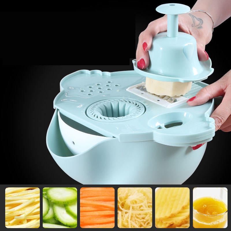Trancheuse à légumes multifonctionnelle avec panier d'égouttage-Mandoline de cuisine pour râper les pommes de terre et les carottes