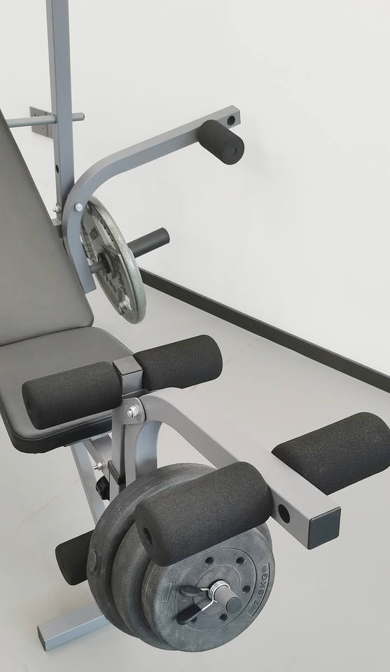 Banc de musculation multifonctionnel avec support pour barre et développateur de jambes - Banc de gym réglable inclinable et déclinable