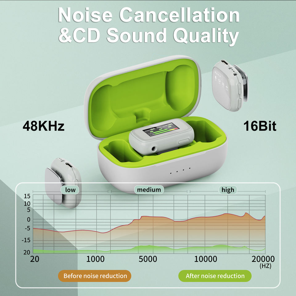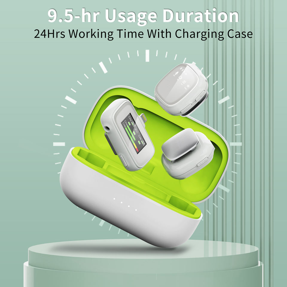 Réduction de bruit, Léger, Portable, Microphone à condensateur, Longue durée de vie de la batterie, Cas de charge, Système de microphone pour caméras DSLR/iPhone/Android/