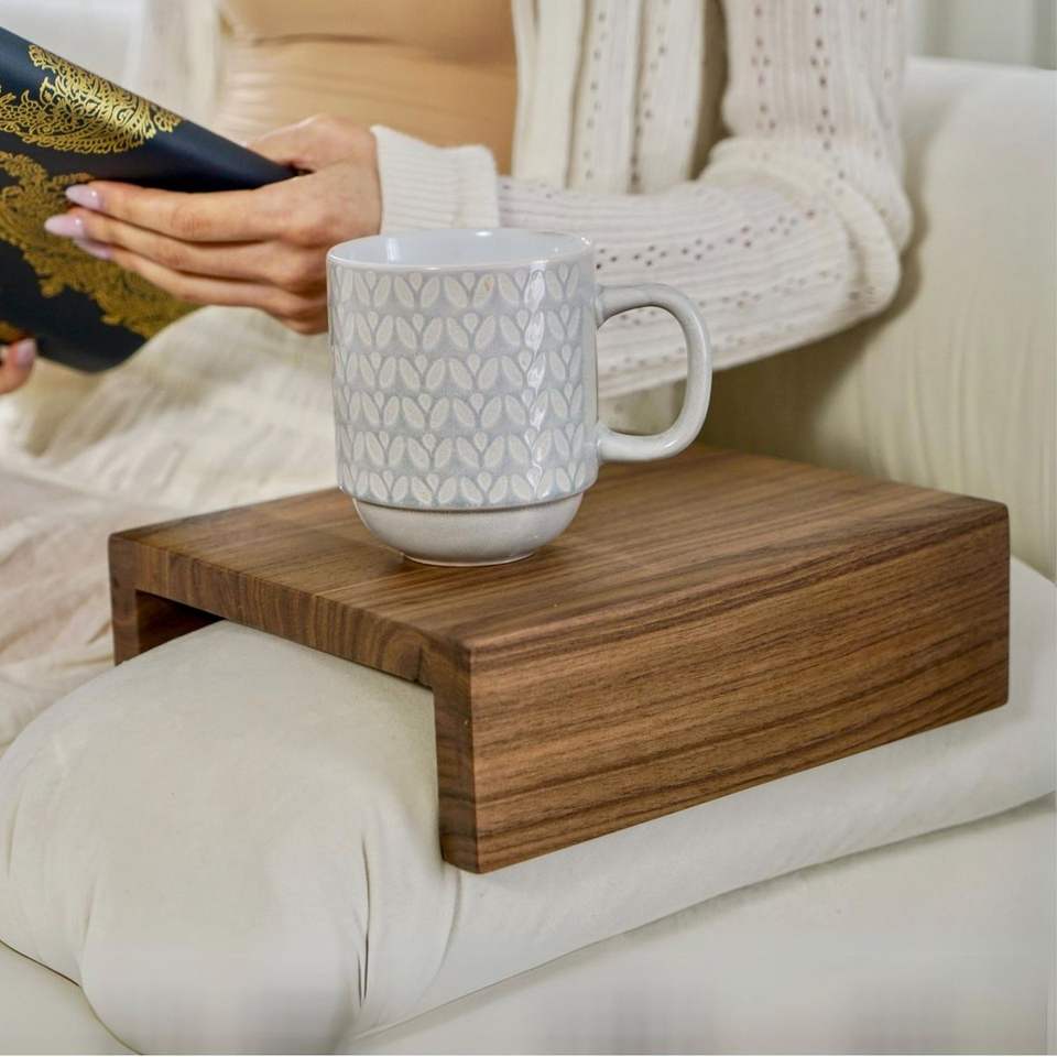 Plateau d'accoudoir multifonctionnel en bois avec finition lisse et design compact pour une utilisation pratique dans le salon