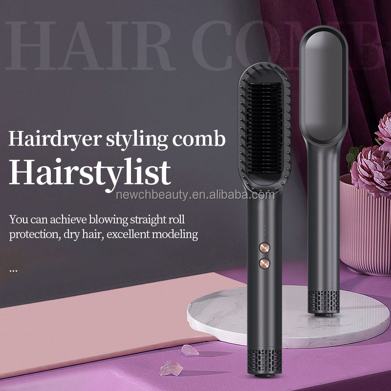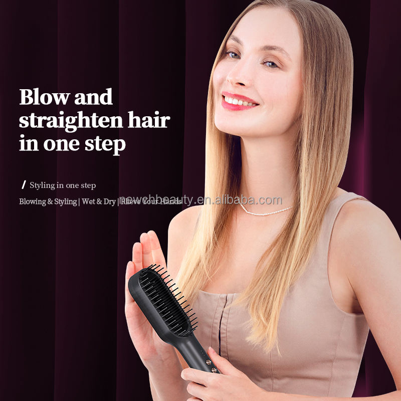 Peigne lisseur multi-cheveux électrique Brosse à cheveux bigoudi Styler Hot Rapid Heating Blow Straighten Hair One Step Brosse sèche-cheveux