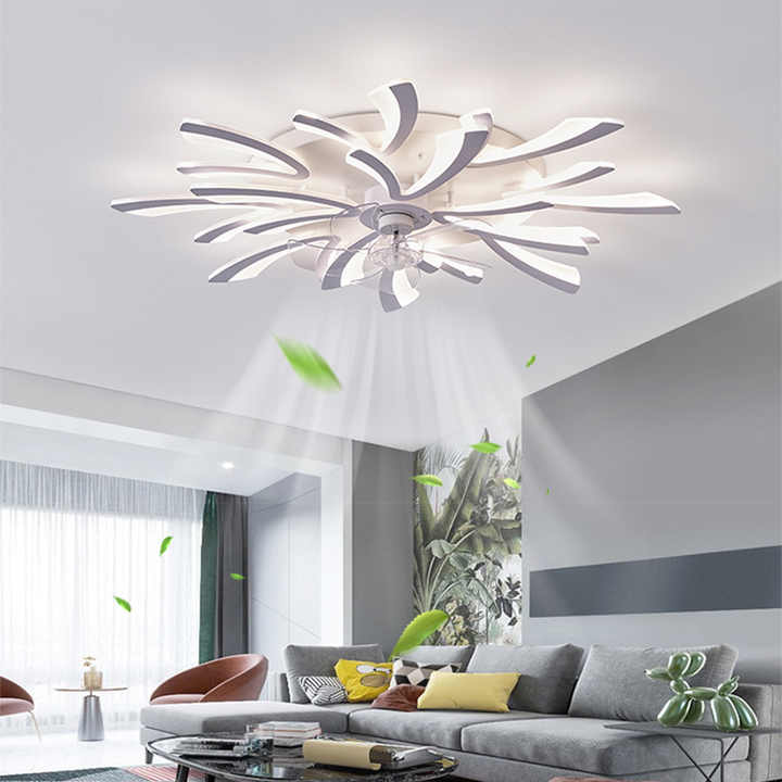 Ventilateur de plafond LED au design traditionnel avec moteur DC, télécommande, température de couleur RGB, 3/5 pales, fonctionnement silencieux pour salon