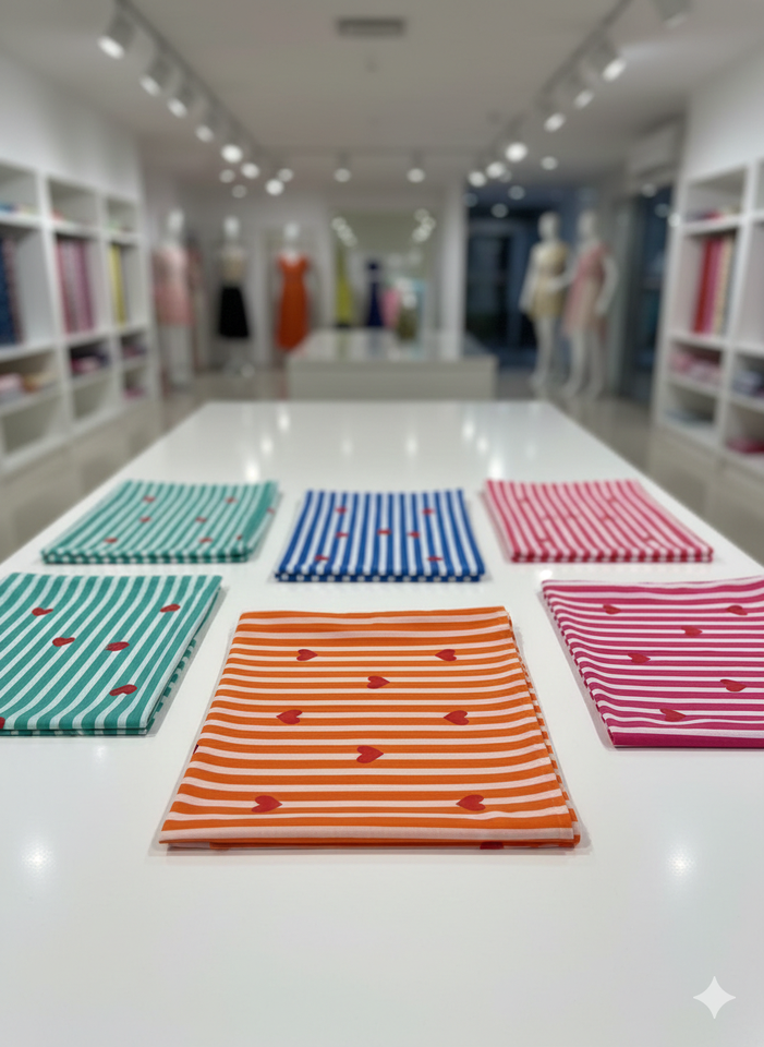 Tissu Popeline de Coton Peigné Léger, Respirant, Absorbant l'Humidité, Biologique et Écologique, Imprimé Cœurs Multicolores