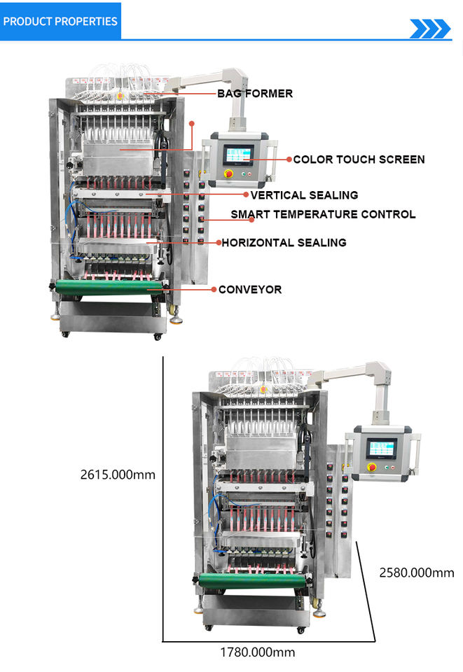 Machine verticale à emballer les liquides à plusieurs voies Machine à emballer les pâtes de sauce ketchup Machine à emballer les liquides en sachets à 10 voies
