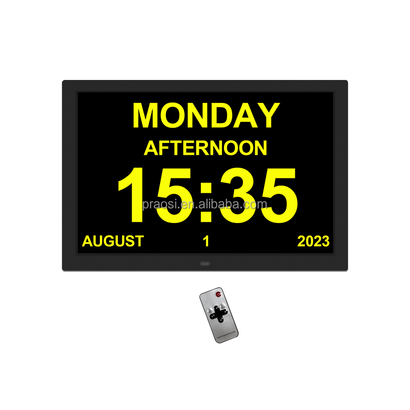 Multi Langues Néerlandais Anglais Finlandais Français Allemagne Arabe Démence Horloge Calendrier 15 "Rappel de Médicament Horloge de Jour Numérique