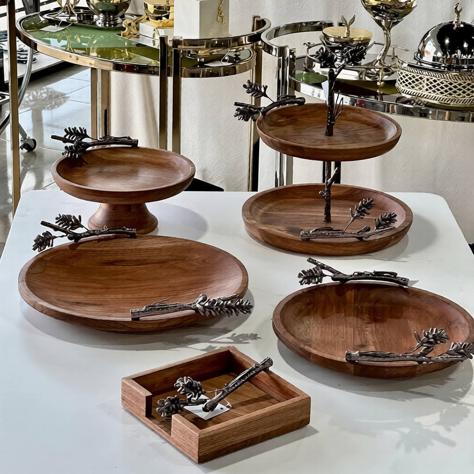 Support à gâteau classique en bois multicouche pour mariages et anniversaires Conception de branches feuillues Poignée de présentation Moule en résine époxy