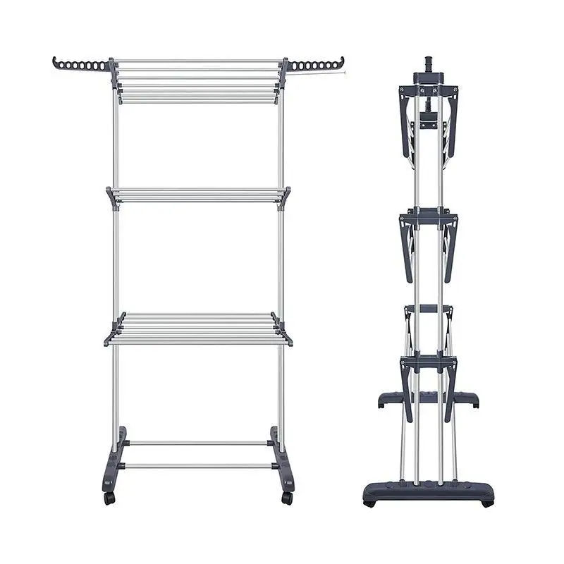 Porte-vêtements multi-niveaux pour la maison, avec roulettes universelles mobiles, support de suspension en métal pour balcon intérieur, installation facile pour le séchage des vêtements