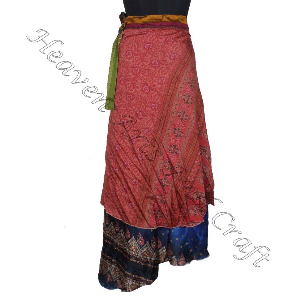 Jupe portefeuille sari en soie indienne à couches multiples Jupes portefeuille d'été sous le genou Fabricant grossiste