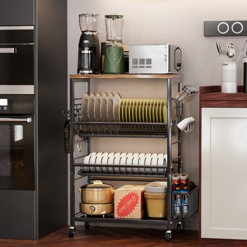 Description:Étagère de cuisine pour boulanger, support pour micro-ondes, coin café, égouttoir à vaisselle
