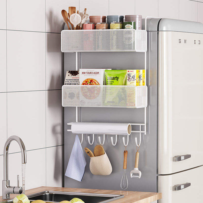 Étagère de rangement multi-niveaux pour réfrigérateur, organisateur d'épices mural, support pour ustensiles de cuisine, étagère suspendue pour réfrigérateur