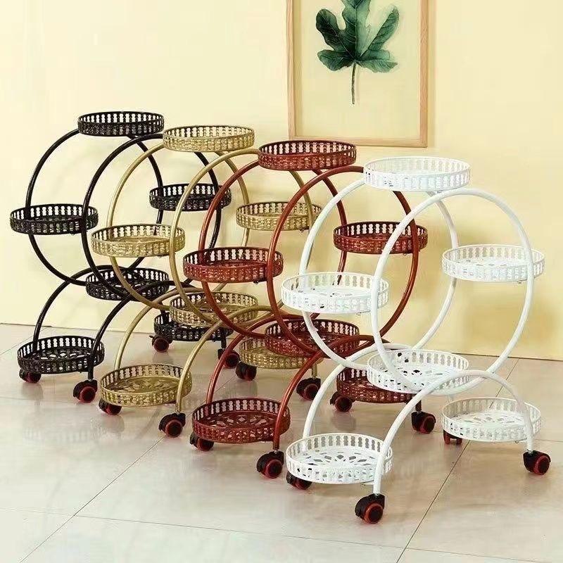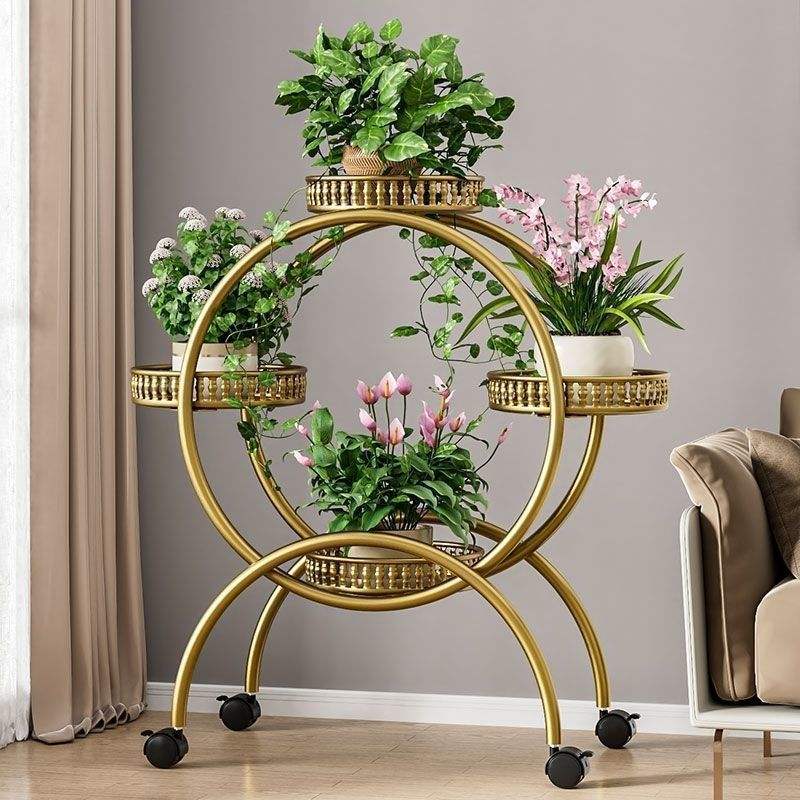 Support à plantes multi-niveaux en fer forgé avec roulettes pour une utilisation intérieure, dans le salon, sur le balcon, support de sol portable