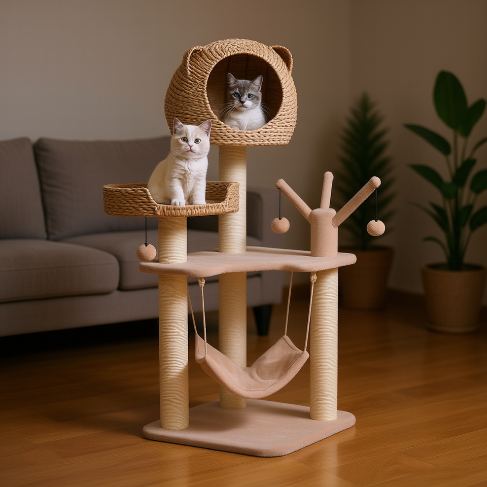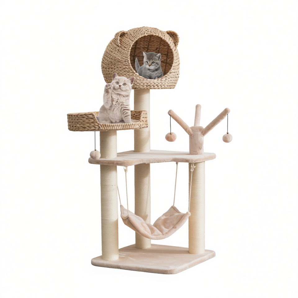 Arbre à chat multi-niveaux avec hamac et griffoir en sisal pour chats d'intérieur, style classique D0100HP3DPA