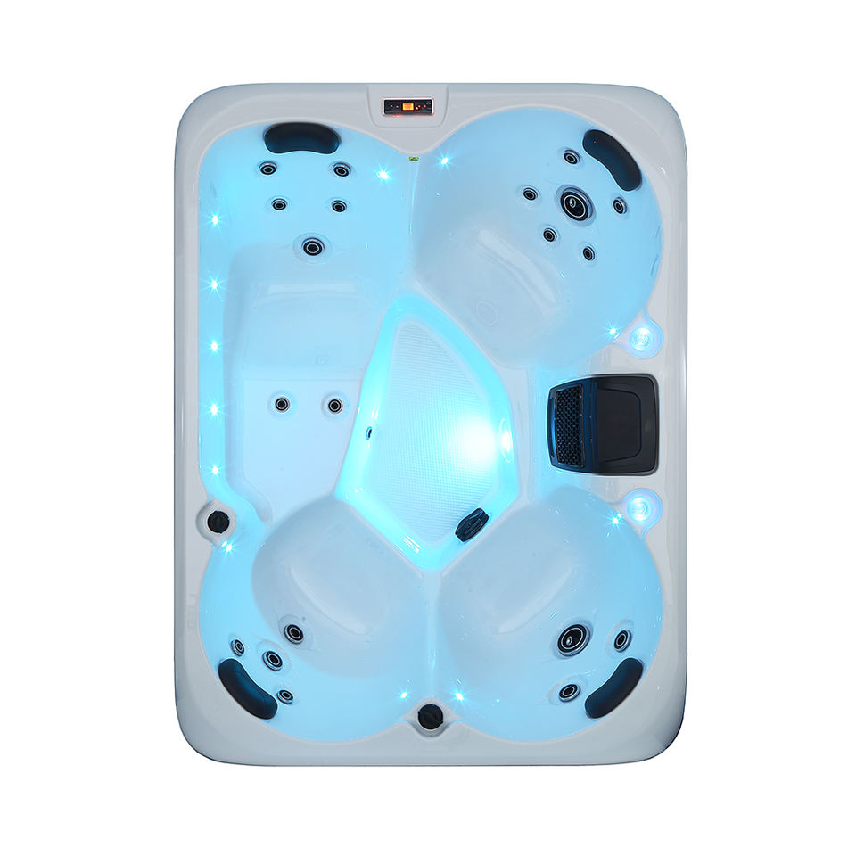Spa extérieur à jets massants multi-niveaux - Modèle professionnel pour 4 personnes avec jets ciblés pour les épaules, le dos et les jambes.
