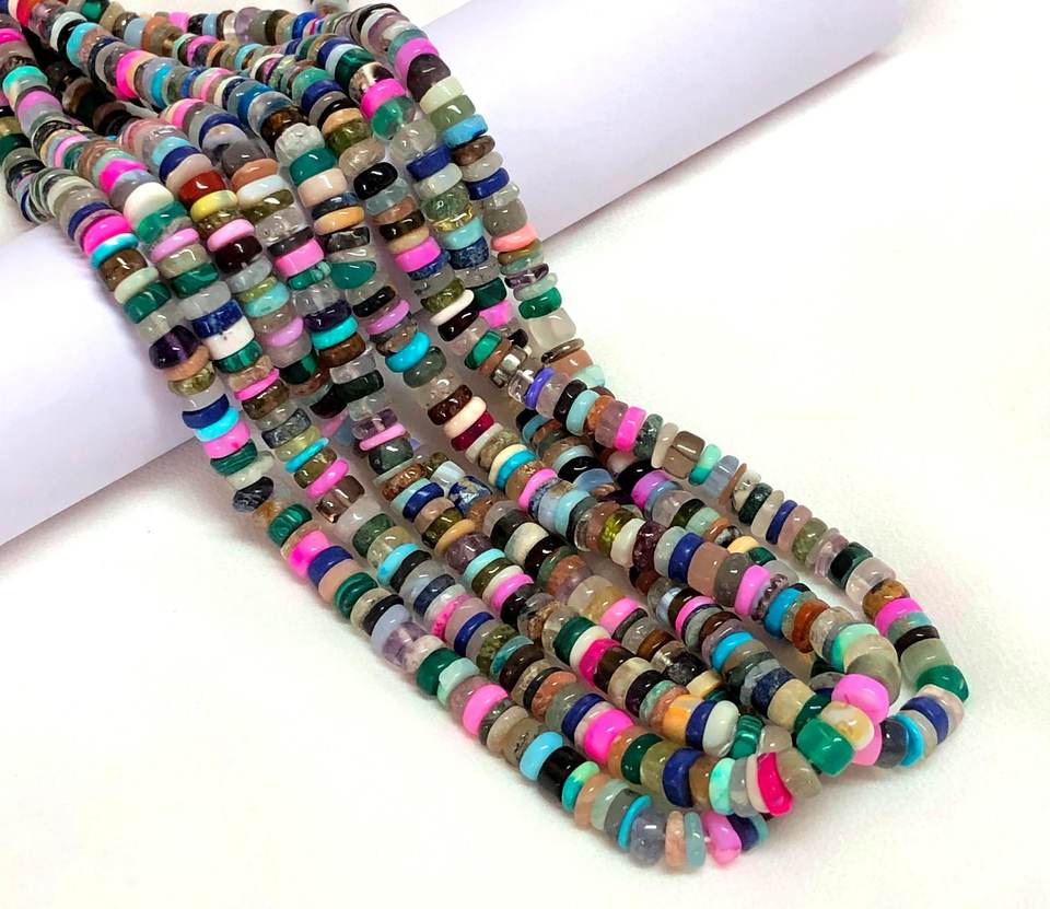Material:Multi Mixed Gemstone Smooth Heishi Disc Shape