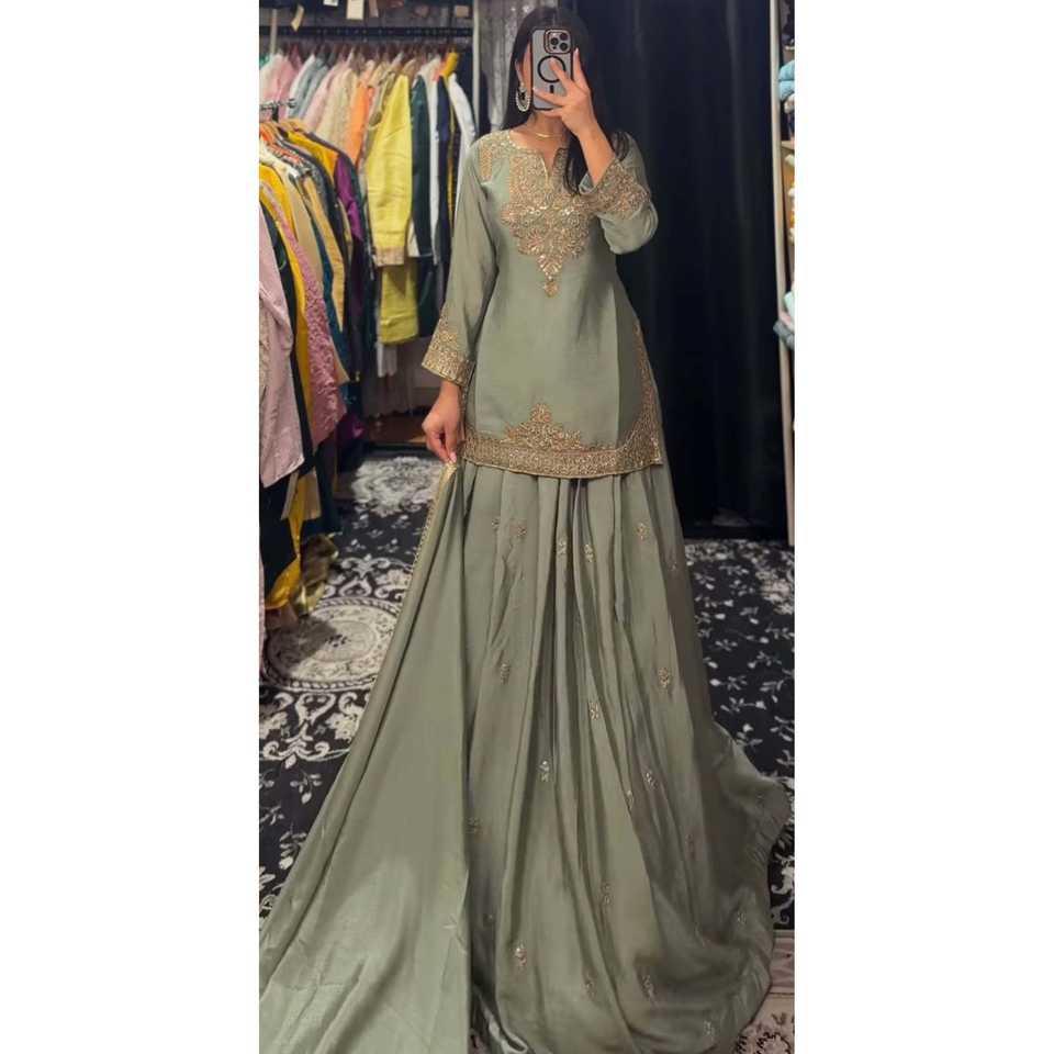 Ensemble de costume de soirée Maruti Creation vert taille L en polyester avec broderie multi-aiguilles, style Salwar Kameez