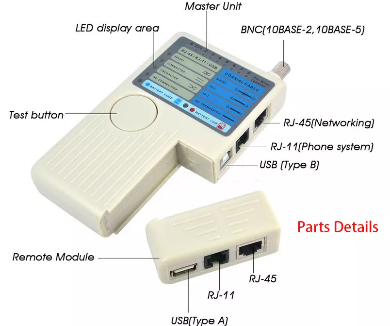 Câble torsadé double STP/UTP, câble coaxial, ligne téléphoniqueType de câble testeur