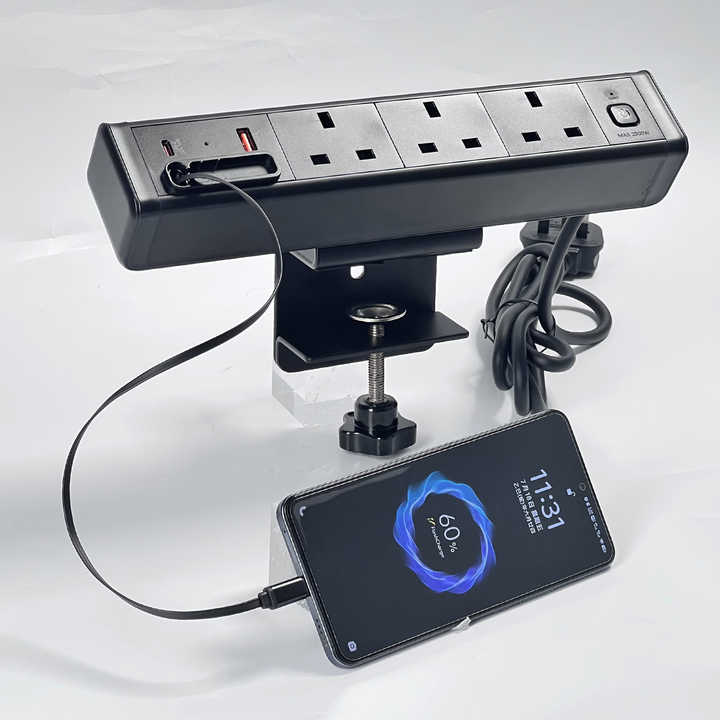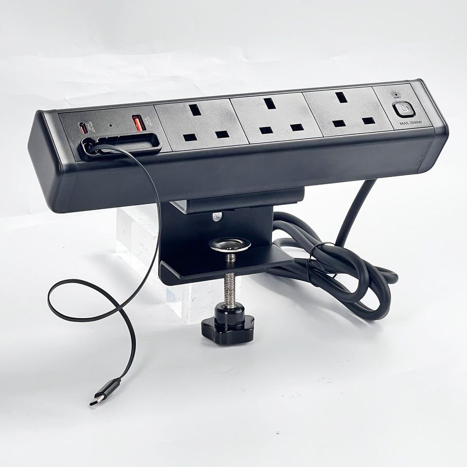 Pince de table multi-prises avec câble USB C rétractable Compatible UK US EU Standard Clamp on Desk Power Socket