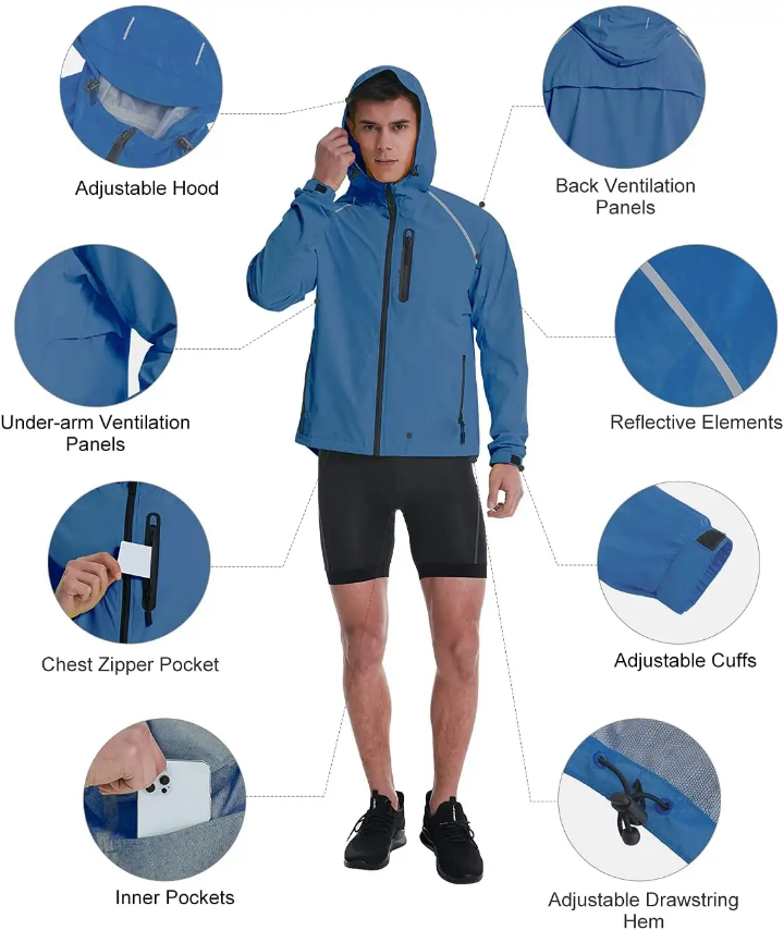 Vestes et manteaux coupe-vent multi-panneaux pour hommes, imperméables, pour la randonnée en plein air, avec fermeture éclair, veste de pluie, veste d'extérieur pour hommes