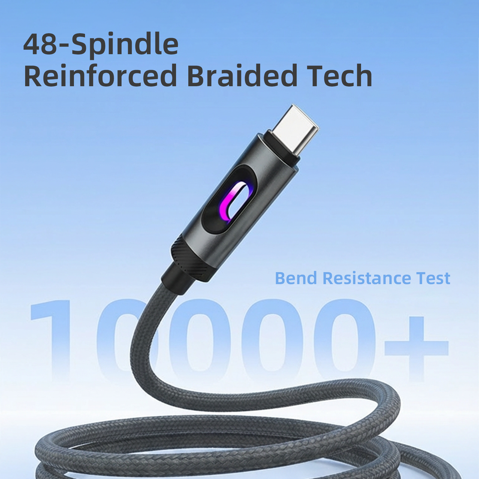 Câble de charge rapide multi-ports 100W USB/Type-C/Ports Prise AC Éclairage LED RGB Conception tressée en nylon pour téléphones mobiles