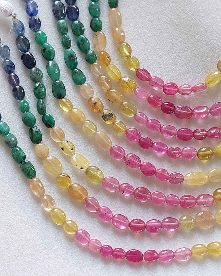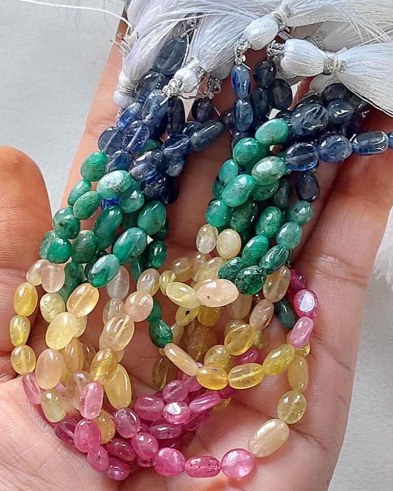 Perles ovales lisses multi-précieuses émeraude rubis bleu jaune saphir perles ovales perles de pierres précieuses en vrac pour la fabrication de bijoux