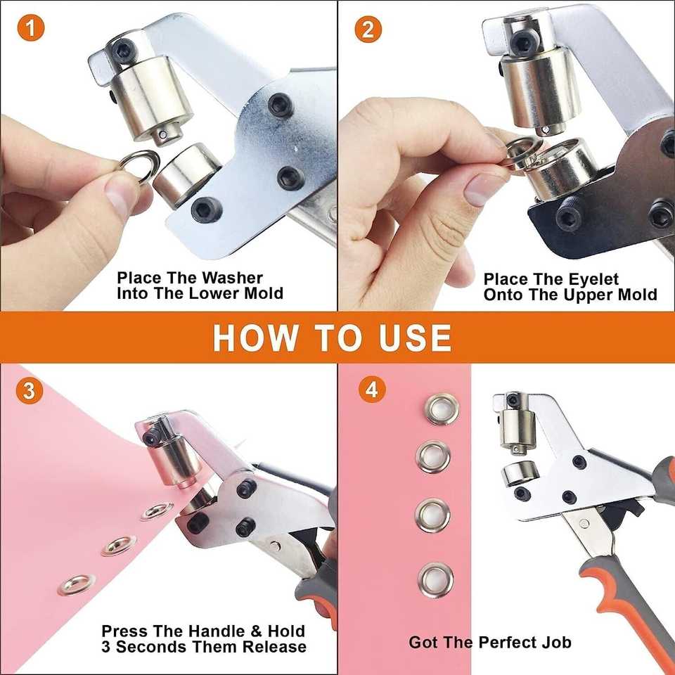 Kit d'outils à œillets 1/4 à usage multiple Poinçon manuel en métal 6mm & 12mm pour rideaux, sacs et vêtements