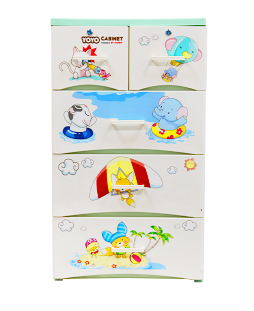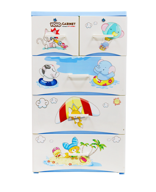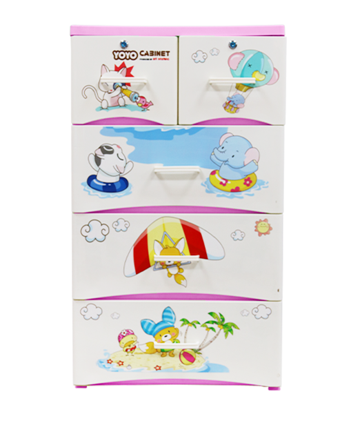 Armoire de rangement multi-usages à 4 niveaux en plastique moulé par injection, motif animaux de dessin animé, étanche et durable, pour chambre et salon