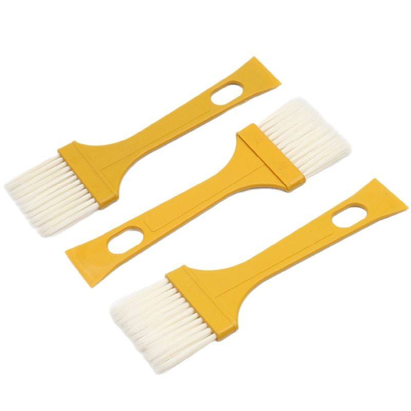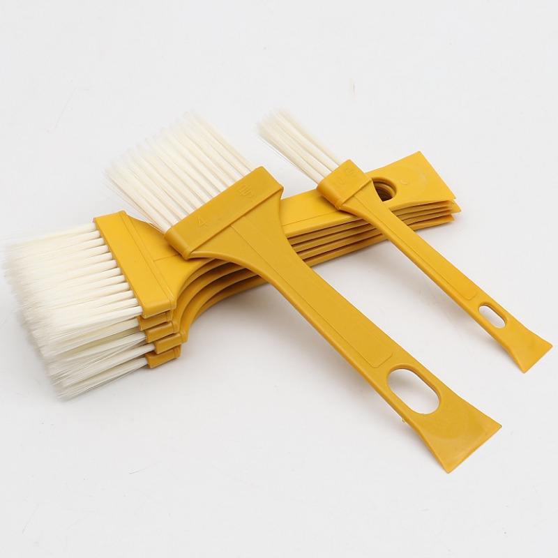 Brosse multi-usages avec spatule, manche en plastique, poils en nylon, forme plate, pour le nettoyage domestique et l'utilisation de matériel.