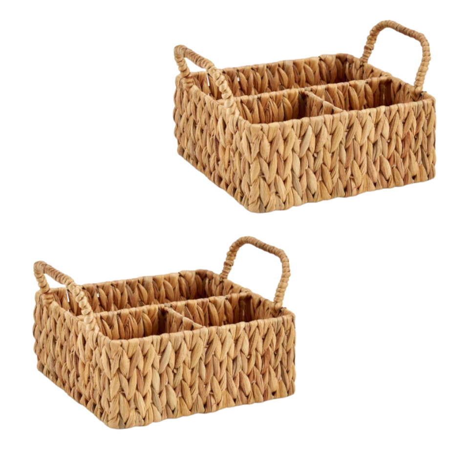 Organisateur multi-usages couleur naturelle, panier en jacinthe d'eau avec poignée, rangement durable de style bohème pour la décoration intérieure, fabriqué au Vietnam