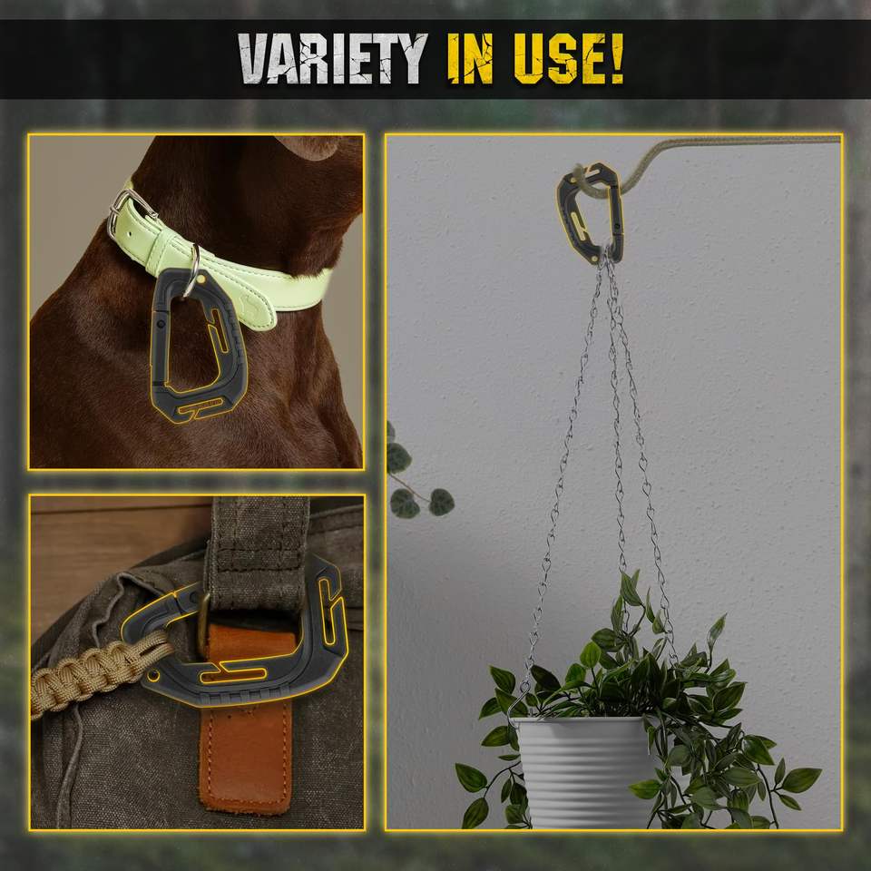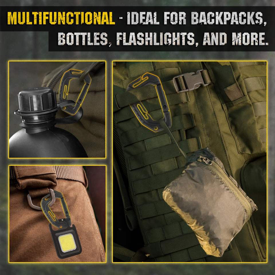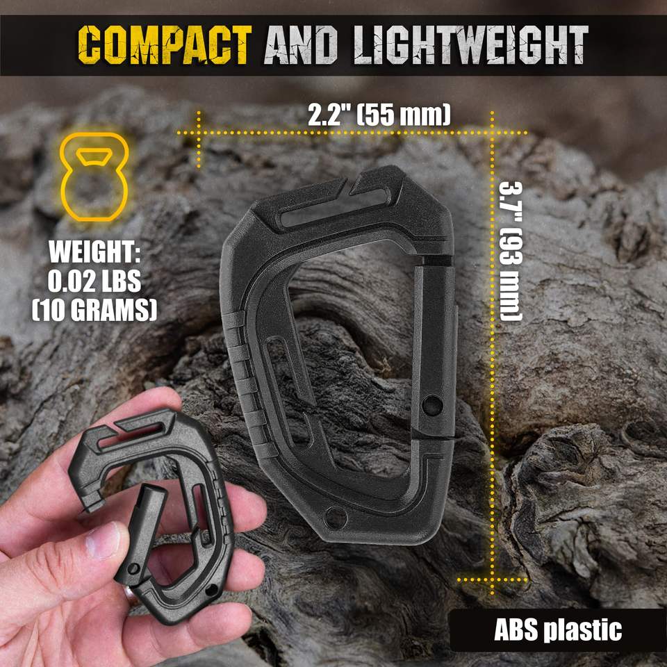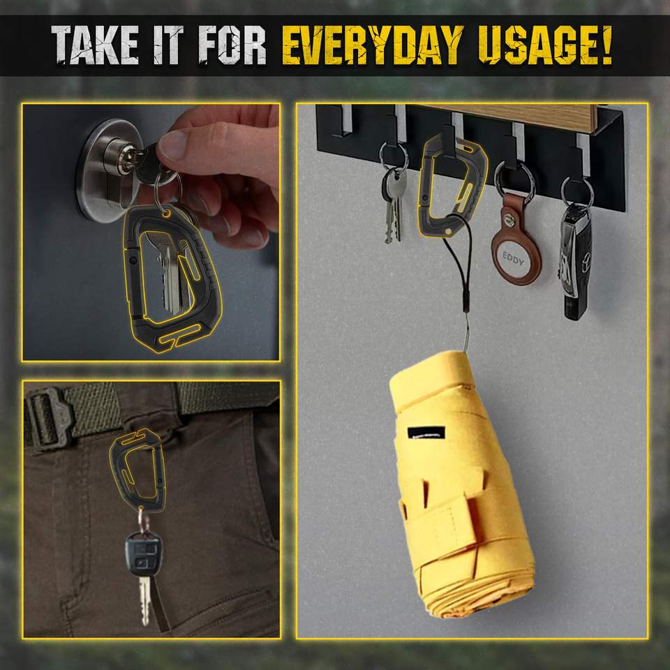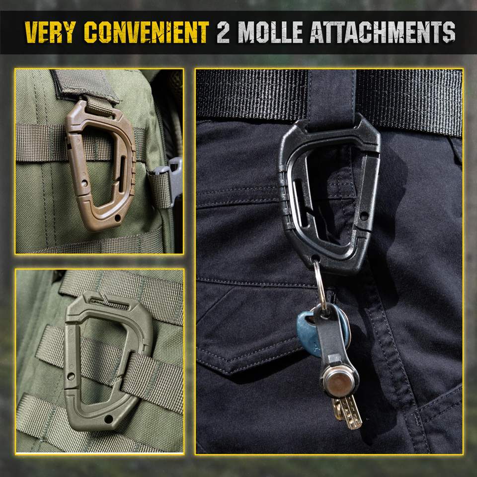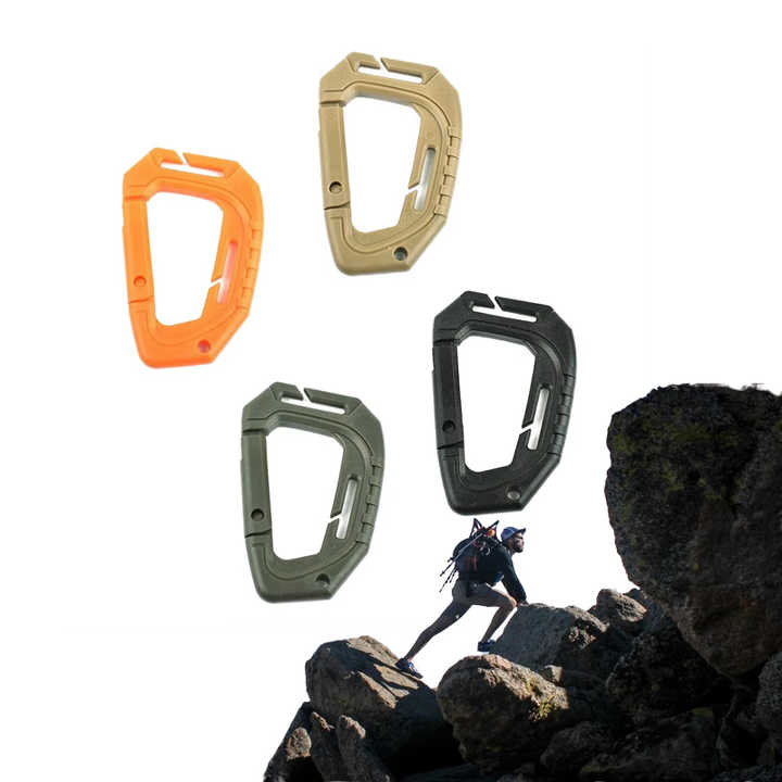 Mousqueton tactique polyvalent en plastique pour l'escalade, sifflet d'urgence, douche, toilette, bouteille d'eau.