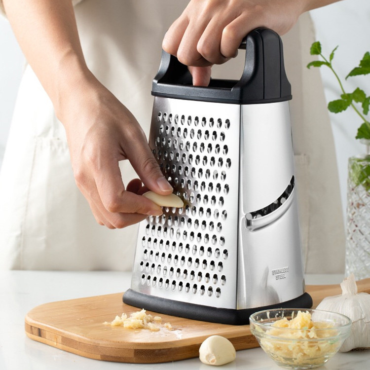 Outil de cuisine professionnel multifonctionnel, trancheuse à fromage manuelle, râpe à légumes en acier inoxydable à 4 faces avec boîte de rangement