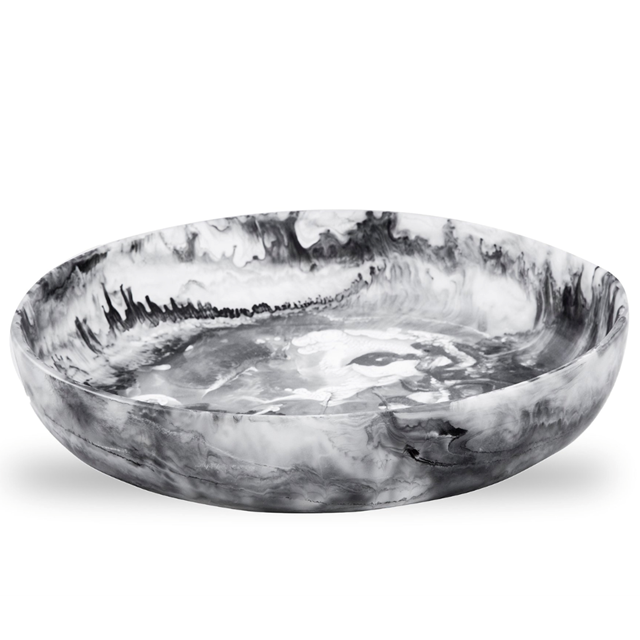 Bol en résine multi-usages, bol de service en résine personnalisé avec des tourbillons noirs et blancs, bol à salade en résine tendance, bol à fruits, vaisselle, couverts