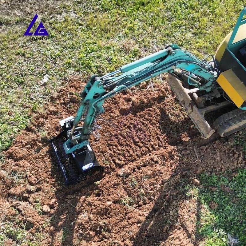 Râteau rotatif multi-usages pour excavatrices : préparation rapide du sol, finition uniforme des lits de semence, élimination des débris pour les travaux de jardinage et agricoles