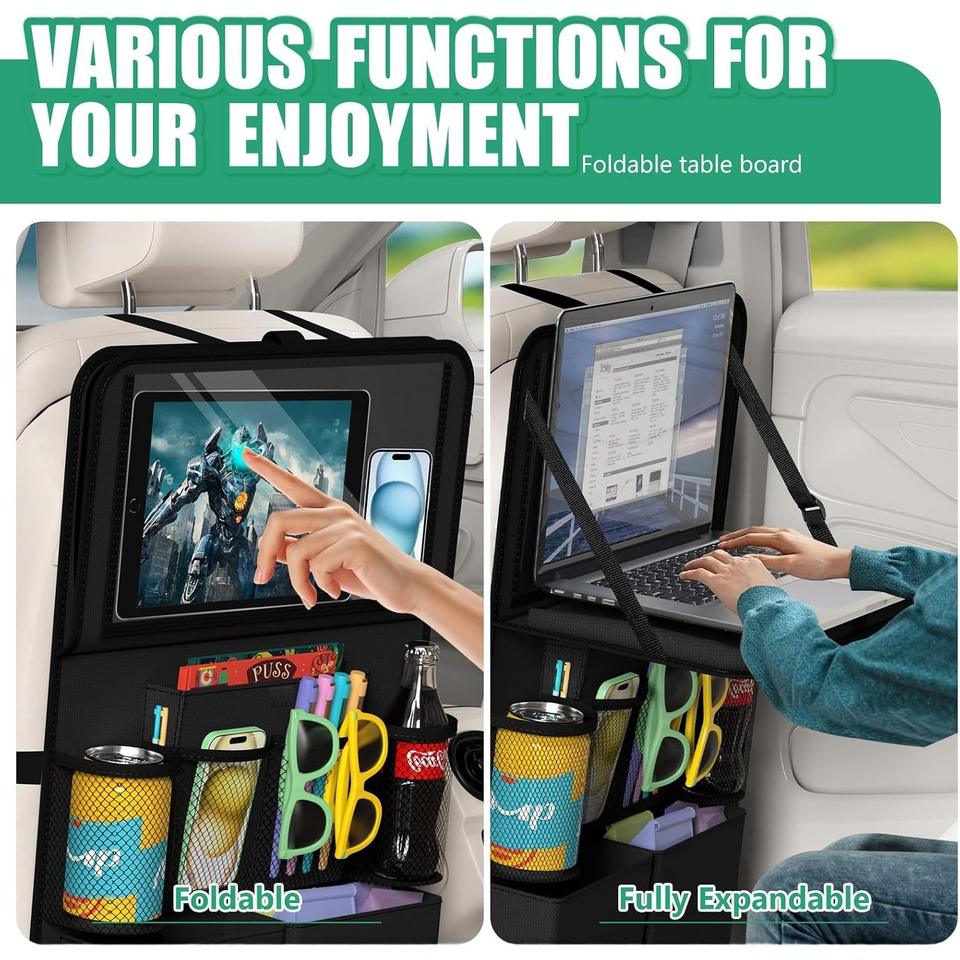 Sac de Rangement Multifonctionnel pour Siège Arrière, Organisateur de Siège Arrière en Oxford avec Table Rabattable, Sac de Rangement Durable pour Siège Arrière