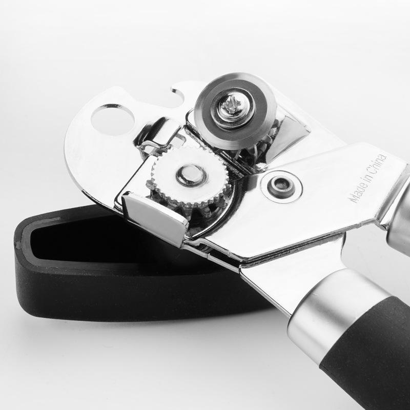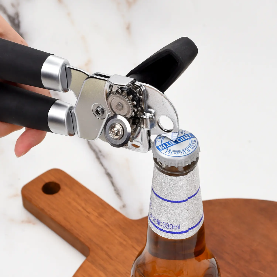 Ouvre-boîte rotatif manuel polyvalent en acier inoxydable et ouvre-bouteille à poignée confortable Gadget de cuisine robuste