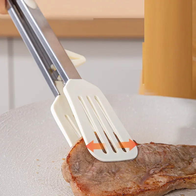 Pince à aliments en silicone multi-usages en acier inoxydable avec supports Pinces de cuisine pour servir du pain à steak
