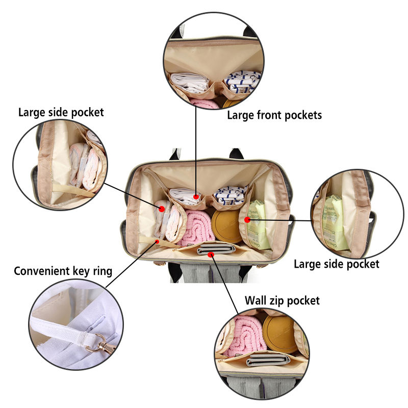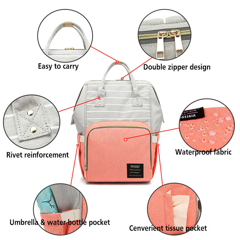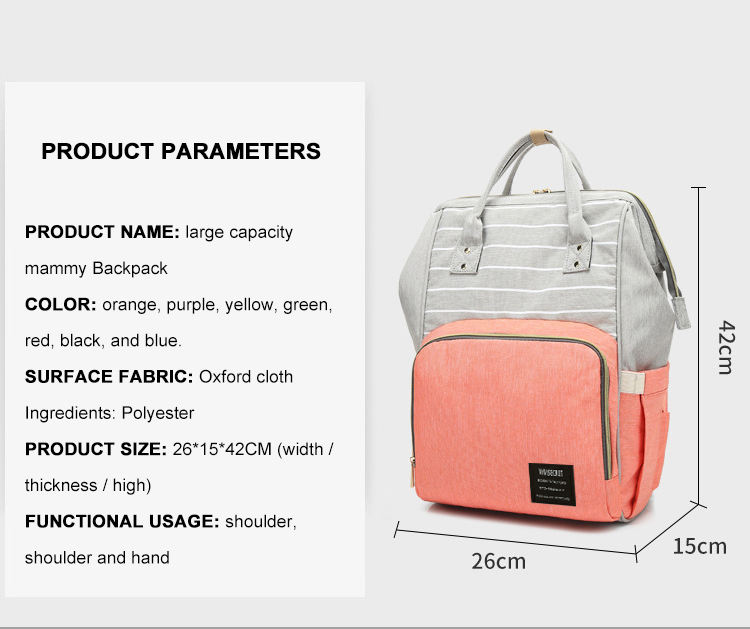 Sac à dos à rayures multiples pour maman papa, orange, vente en gros, sac à couches durable pour bébé, de voyage en plein air