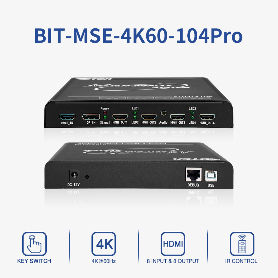 Extenseur multi-écrans, BIT-MSE-4K60-104Pro, 1 entrée 4 sorties, barre de son, transmetteur audio pour téléviseur intelligent 4K, lecteur de CD, lecteur de cassette