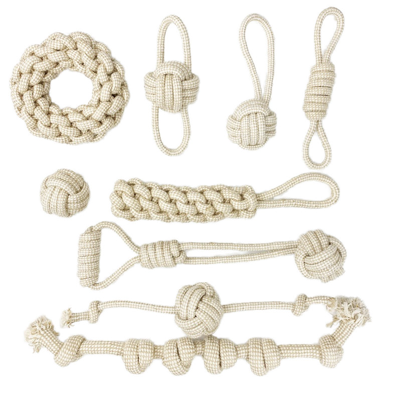 Ensemble de jouets pour chien en corde de coton et nylon naturel gris écologique - Jouets durables et interactifs pour usage intérieur, pour le soin dentaire, cadeau d'anniversaire