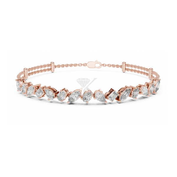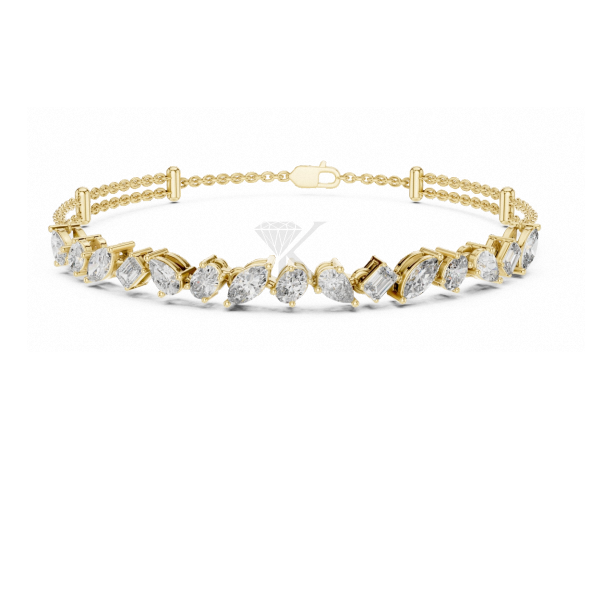 Bracelet à double chaîne multi-formes en diamants, orné de diamants de laboratoire à taille mixte en or jaune, bijou délicat pour superposition