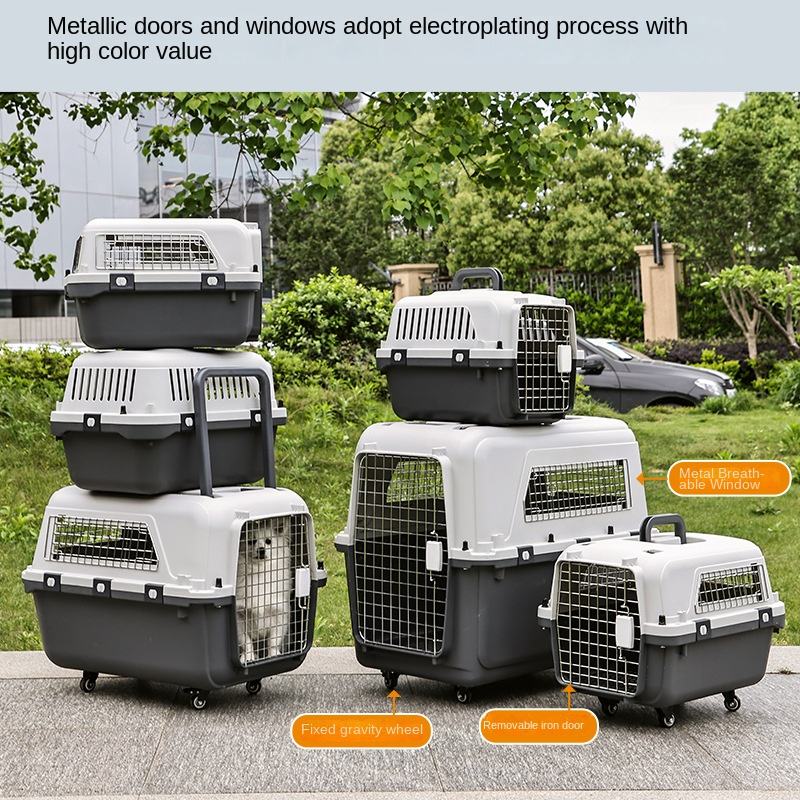 Cage de transport pour animaux de compagnie, chien et chat, multi-tailles, durable, portable, pour l'extérieur, cage de transport pour avion, cage en PP et en fer, roulettes, poignée télescopique