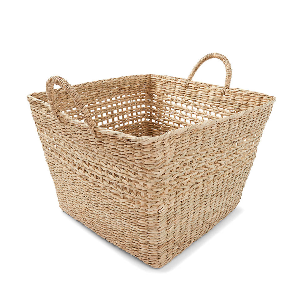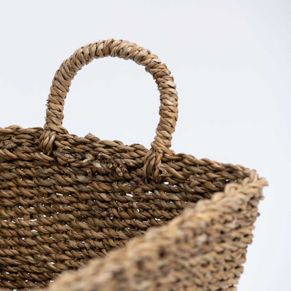 Ensemble de paniers de rangement rectangulaires en jonc de mer multi-tailles avec poignées pour la cuisine, la salle de bain, le salon, le bureau - Écologique