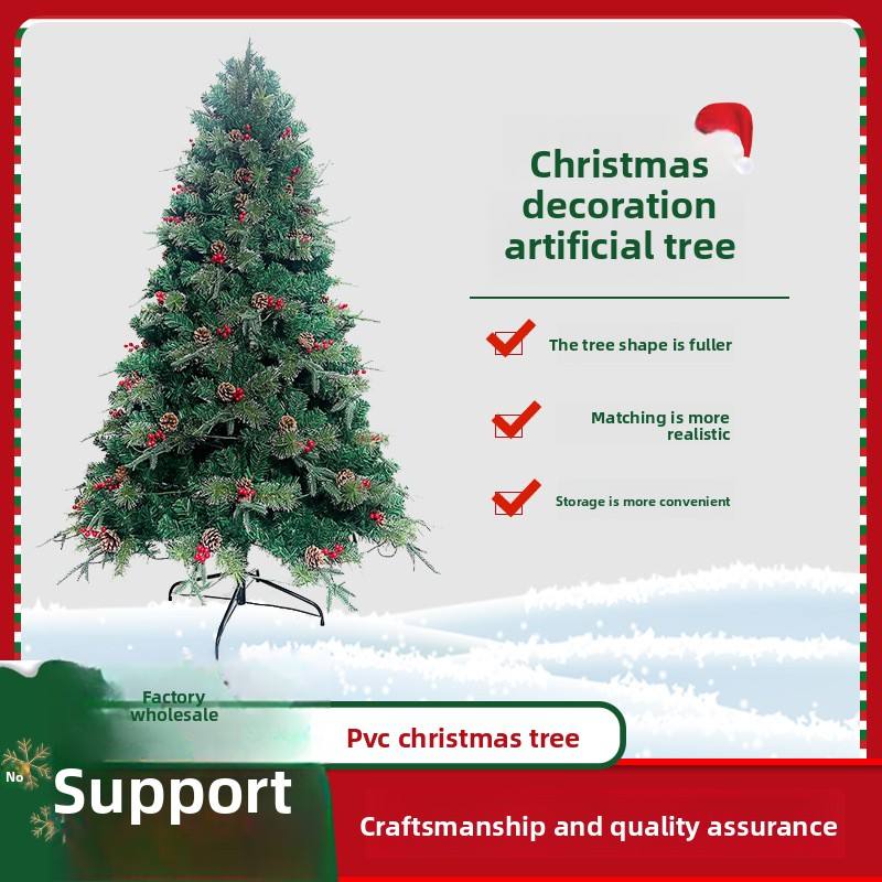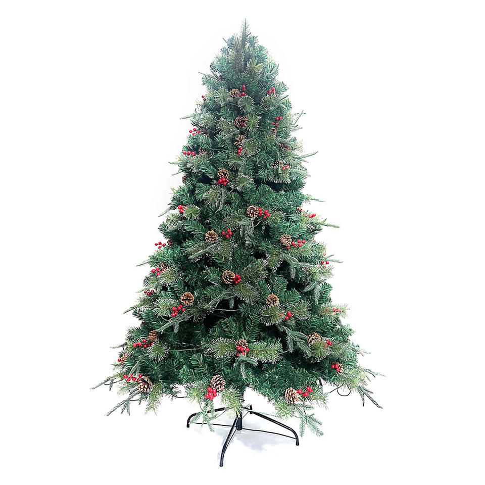 Arbres de Noël artificiels décoratifs multi-tailles, avec baies rouges et pommes de pin mélangées, en PVC, à pointes automatiques, vente en gros